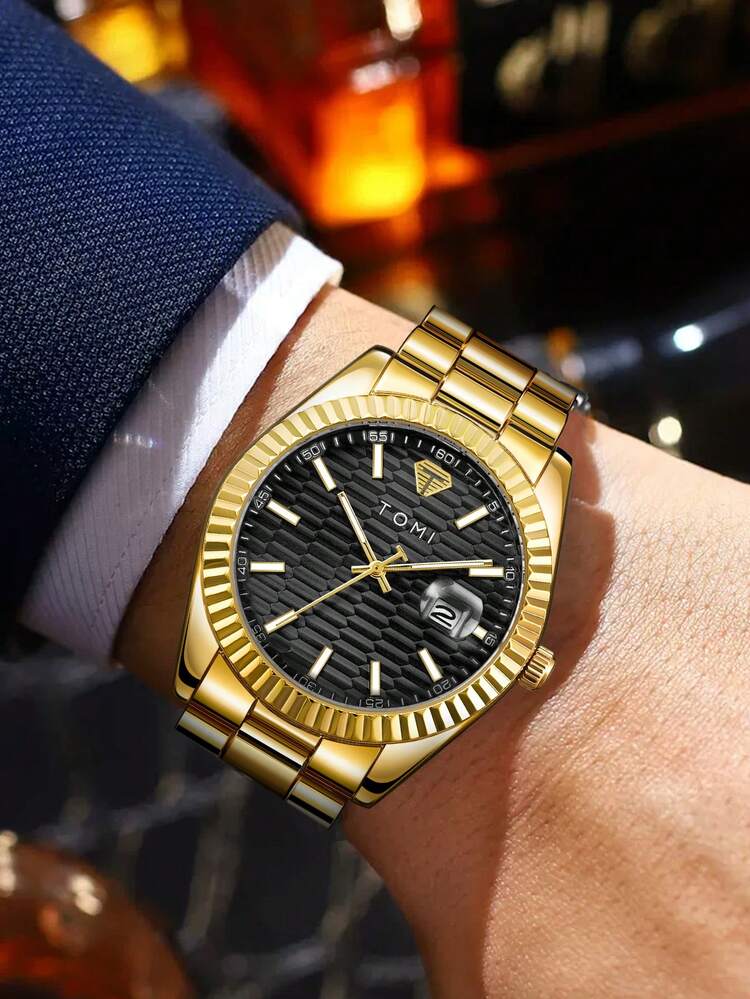 TOMI T-304 New Men's Luxury Business Stainless Steel Watch Gift Box Set