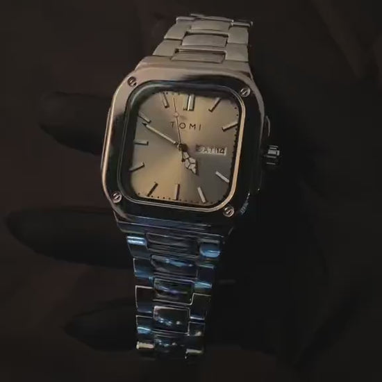 The TOMI T-306 is a refined chain watch designed for professionals who appreciate classic elegance and everyday practicality. With its square dial and sleek stainless-steel chain, this watch adds a bold, confident touch to your business or formal attire.