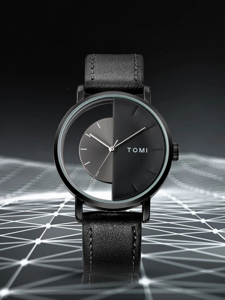 TOMI T-080 Unisex Watch Half Transparent Leather Strap